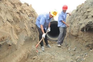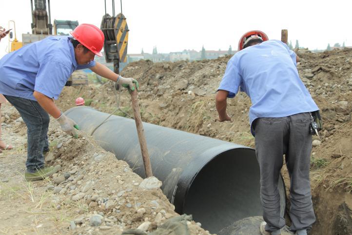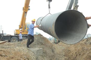 8月31日中上午11時許,天氣陰冷,烏云低垂,一場大雨即將來臨。在內(nèi)環(huán)南路-沿江大道段供水管網(wǎng)施工工地上,卻是一派機(jī)器轟鳴、熱火朝天的施工景象。襄陽中環(huán)水務(wù)供水工程有限公司第五項目部施工員王俊,正和另外5名施工員一起,鋪設(shè)內(nèi)環(huán)南路-沿江大道長達(dá)3.2公里、直徑1.2米的供水主管網(wǎng),解決余家湖片區(qū)居民家中水壓低的問題。